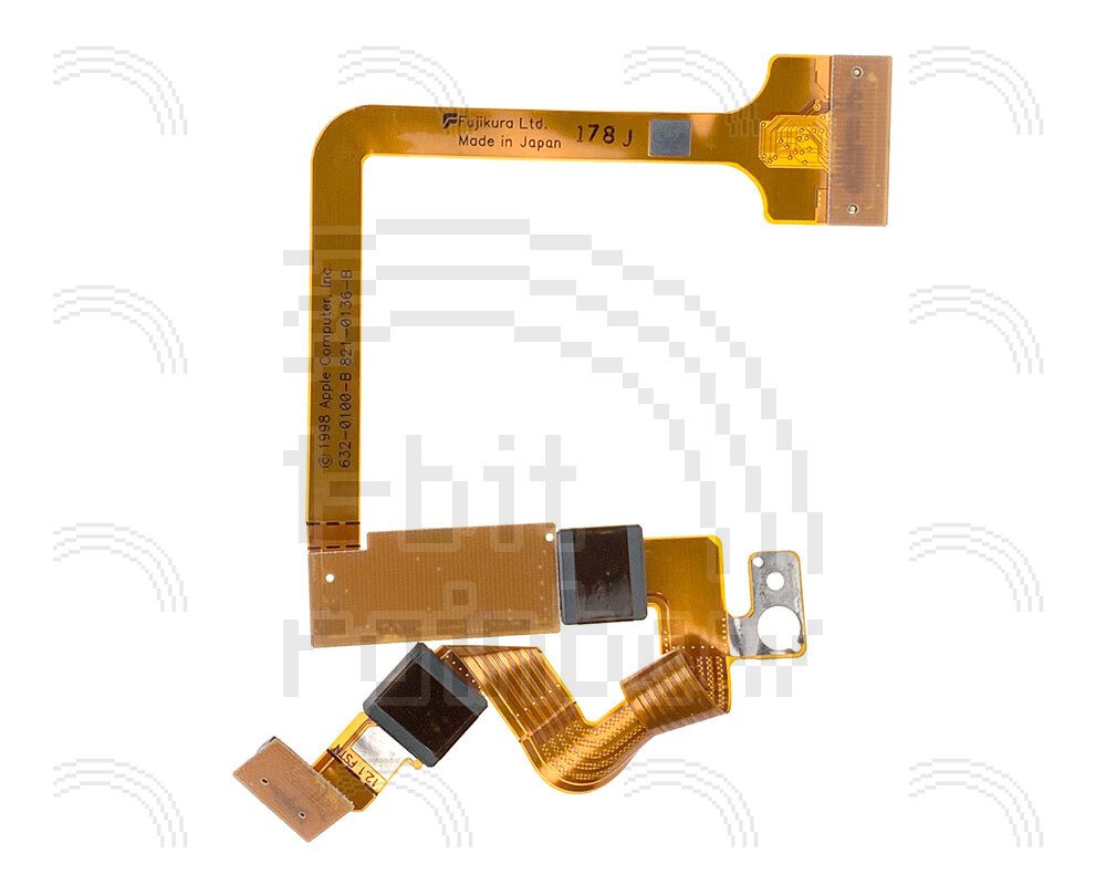 Original Apple, fully tested LCD data (LVDS) flex cable and integrated driver board and ferrite collar for the 12.1" passive matrix (CFSTN) display models of Wallstreet PowerBook G3. This cable connects to the logic board, passes around the left hand hinge and then connects to the back of the LCD panel within the lid.