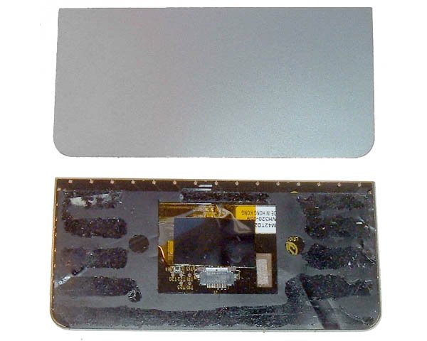 Track pad board for the 1GHz, 1.33GHz and 1.5GHz models of 17" Aluminium PowerBook G4. This is just the track pad circuit board itself which mounts into the top case. This must be fixed in place with a suitable adhesive or strong double sided tape.