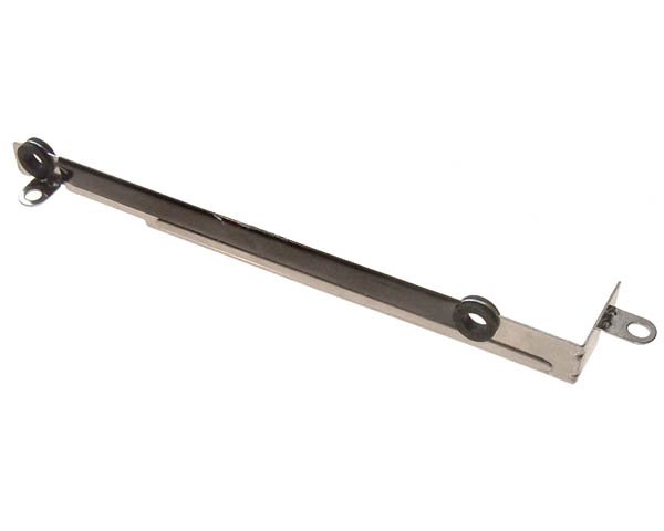 Left hand hard drive mount bracket complete with rubber shock grommets. This bracket will fit all models of 17" Aluminium PowerBook G4. It supports the left hand side (as you look at the front of the PowerBook) of the hard drive via drive mount screws (sold seperately) and screws onto the rib frame/chassis.