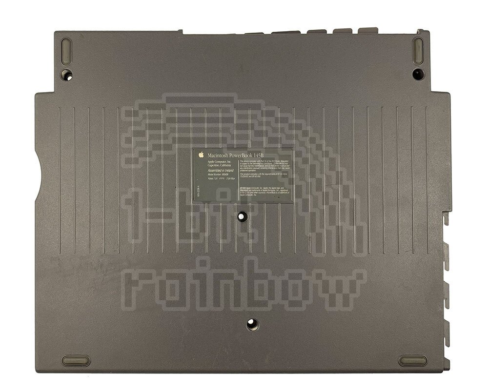 Original Apple PowerBook bottom case from a PowerBook 145B. This part will fit the PowerBook 140, 145, 145B and 170 but has a 145B model label.