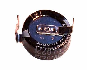Logic board mounted 0.022F 5.5V capacitor used to supply power to hold PRAM settings while changing the battery. This capacitor is suitable for use on all white iBook G3s and G4s, and on the 12" Aluminium PowerBook G4 range.