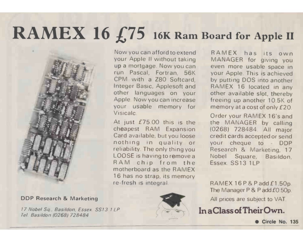 RAMEX 16 memory expansion board for the Apple II, IIplus, IIeuroplus and IIe. British made.