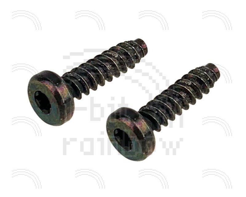 2 x original Apple, black T15, self-tapping cheese head screws. The chassis and CRT both use four to fix to the front case/bezel. Used on the Macintosh 128K and 512K.