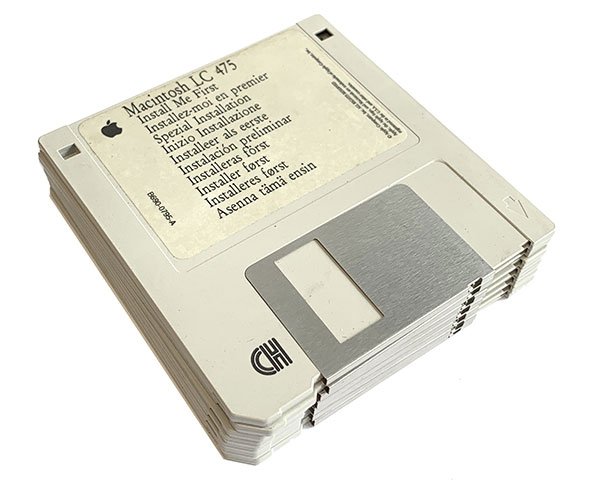 Original, working, complete set of install disks for the Macintosh LC475. This is the machine specific floppy disk set that comprises 7 x high density floppy disks as follows: